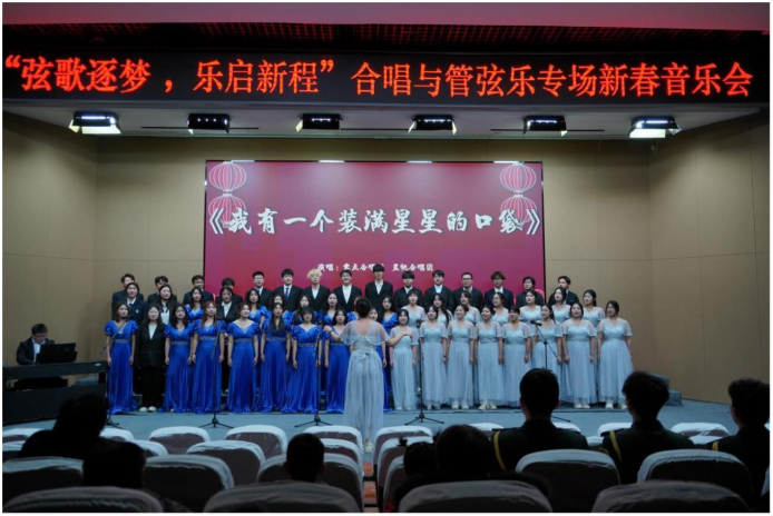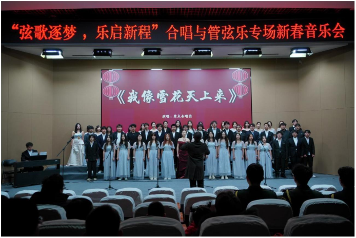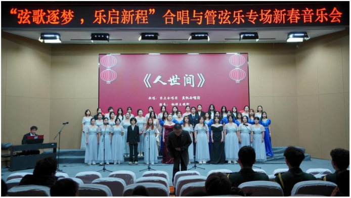院报告厅内灯火辉煌,座无虚席。“弦歌逐梦,乐启新程”合唱与